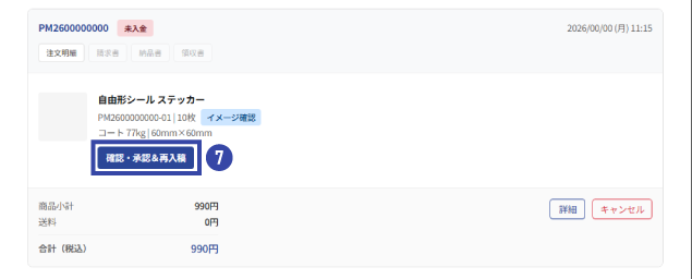 7 入稿ファイルを変更する場合は、スタッフによるデータ処理完了後、マイページの「確認・承認&再入稿」をクリックしてください。
