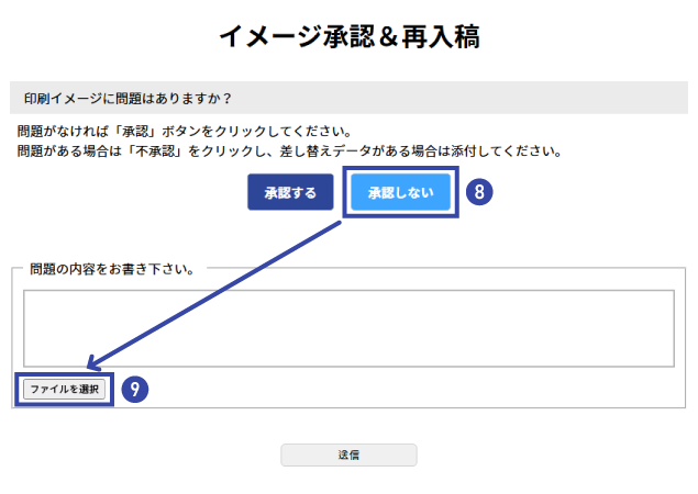 8~9 「承認しない」をチェックしてファイルを再アップロードしてください。
