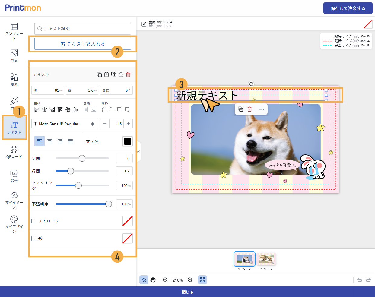A-5テキスト:文字の追加や、おしゃれなプリセットフォントを使用できます。