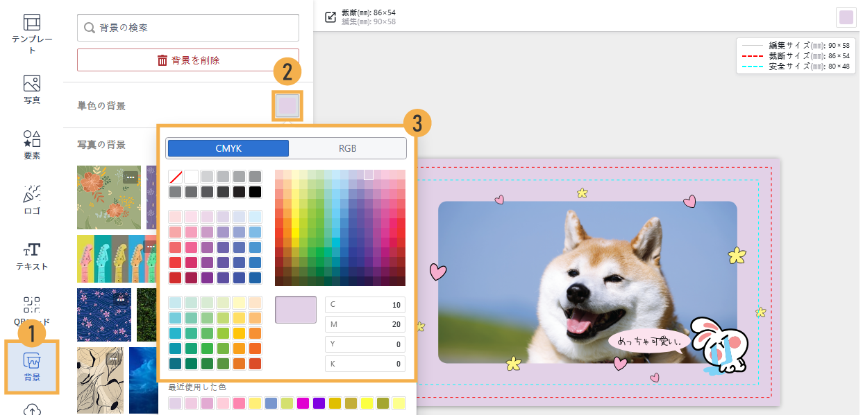 3パレットからお好きな色を選んでクリックすると、背景色が変更されます。