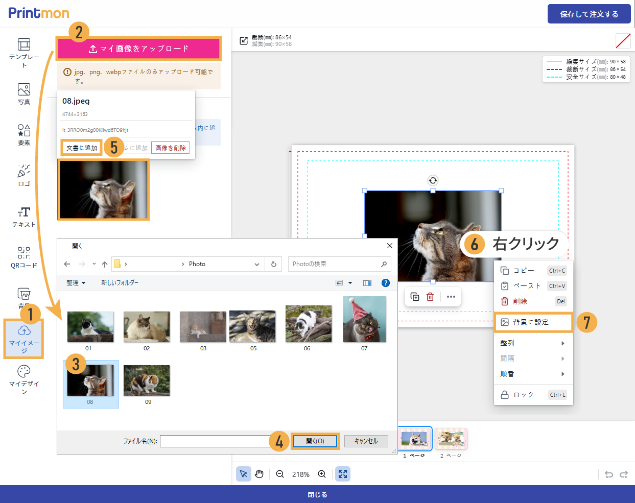 A-8マイイメージ:お手持ちのデバイス(PC・スマホ)に保存されている画像をアップロードできます。