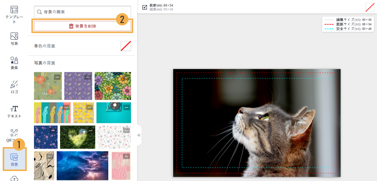 2「背景に削除」をクリックすると、設定されている背景画像が削除されます。