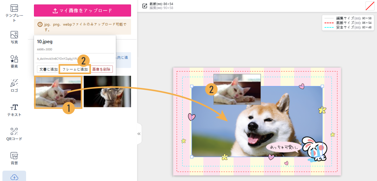 2または、「マイイメージ」から好きな画像を直接フレーム内へドラッグします。