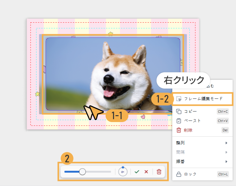 2下部のメニューバーを使用して、画像のサイズや位置などを自由に調整できます。