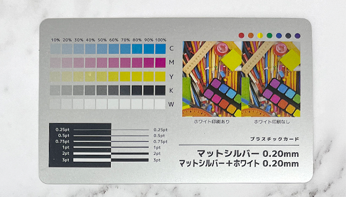 さらに、ゴールド、シルバー、マットシルバー、透明カードのオプションでは、追加で白色印刷が可能です。
